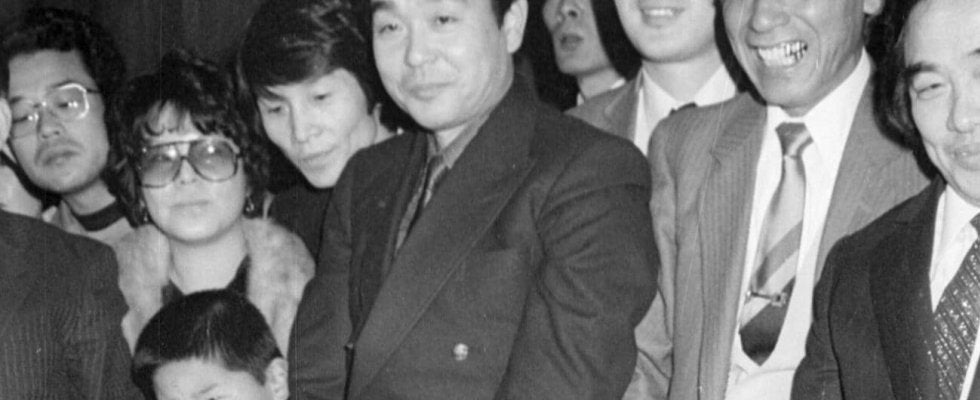 【写真】84年、初優勝を飾り、支度部屋で後援者らと記念撮影する大関若嶋津