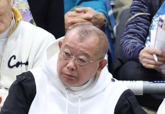 【写真】「眼光半端ねぇ」相撲中継に映り込む大物落語家の姿 隣には20歳年下の妻