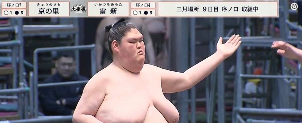 <大相撲三月場所>◇九日目◇16日◇大阪・エディオンアリーナ【映像】巨漢力士の細すぎる手足(実際の様子) 体重152キロ…