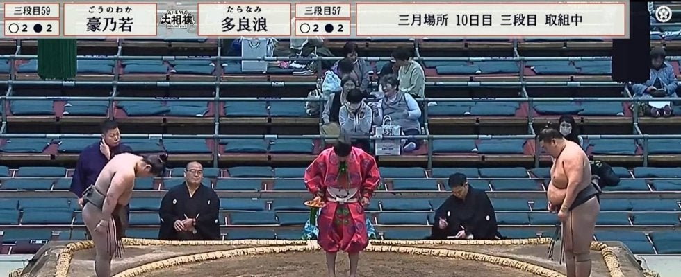 <大相撲三月場所>◇十日目◇17日◇大阪・エディオンアリーナ【映像】「え、オレ?」力士がうっかりハプニング 土俵際で見事…