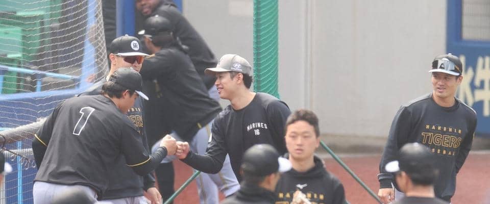 侍ジャパン戦友が熱いグータッチ WBC組3人衆がロッテ種市と談笑 坂本とは韓国戦でバッテリー | 野球