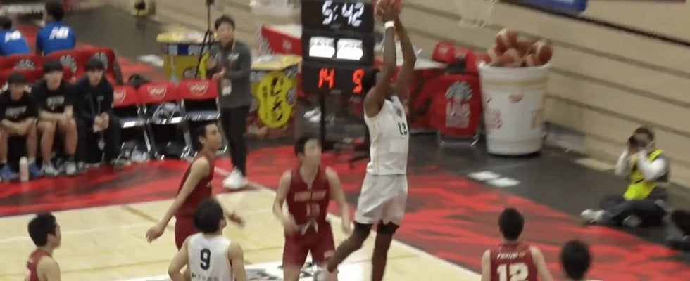 「えぐすぎる」\"204cmの高校1年生\"が豪快ダンク!2人の上から叩き込む→リング揺らす破壊力に会場どよめき