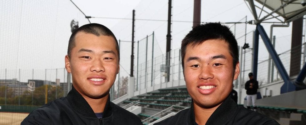 【写真】2026年3月18日、初戦を前に意気込む中京大中京の荻田翔惺(左)と松田知暉(撮影・加藤哉)