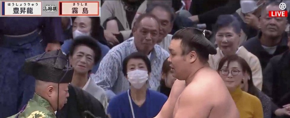 霧島、豊昇龍撃破で「懸賞いっぱい」の圧巻光景 横綱は今場所4位の123本…館内喝采の中、勝利を物語る“分厚い束”に驚き | ABEMA
