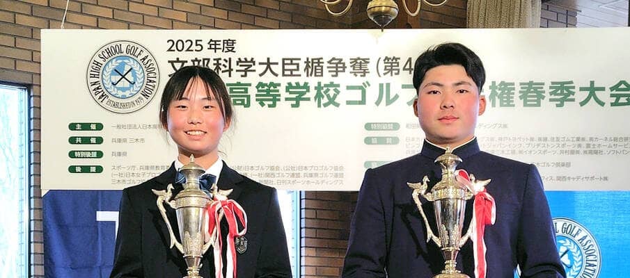 春高・春中ゴルフ最終日 高校の部は小川琥太郎と佐々心美が完全V 中学の部は山崎絆太と本村紅音が優勝