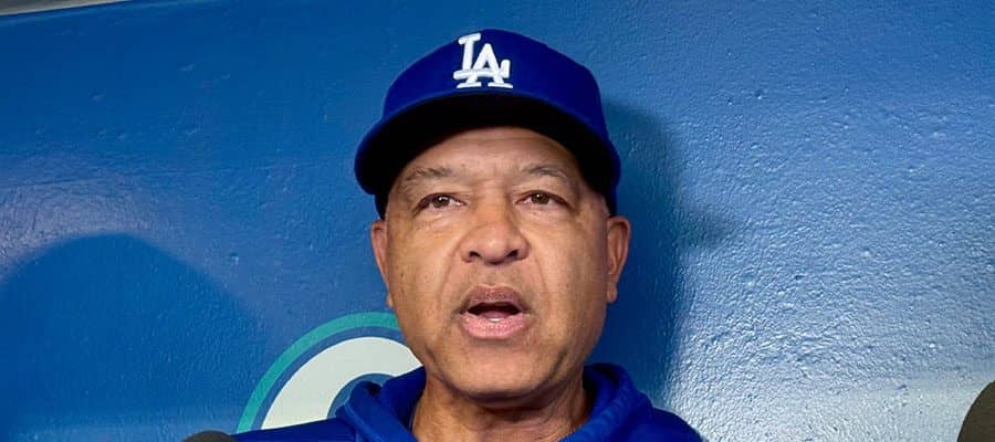 試合前、取材に応じるドジャースのデーブ・ロバーツ監督【写真:小谷真弥】