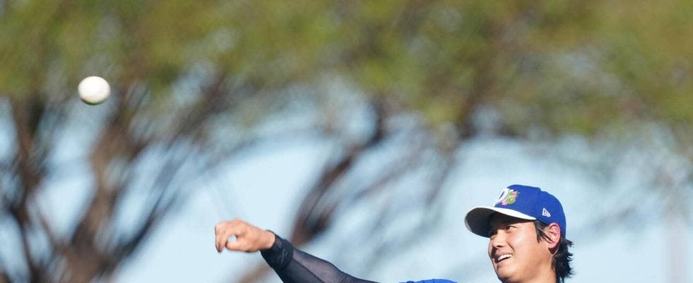 【写真】投球練習を行うドジャース大谷(撮影・垰建太)