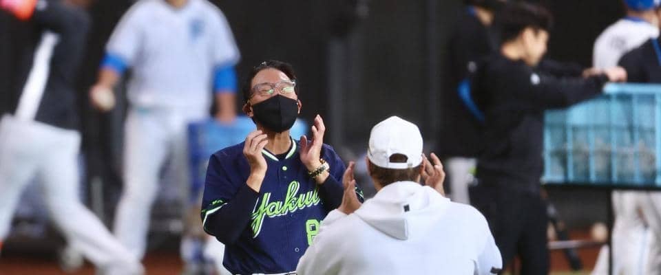 日本ハム 新庄監督が池山監督のマスクいじり!?黒の無地マスク着用→練習中に笑顔で声をかける 前日にプレゼント明かす | 野球