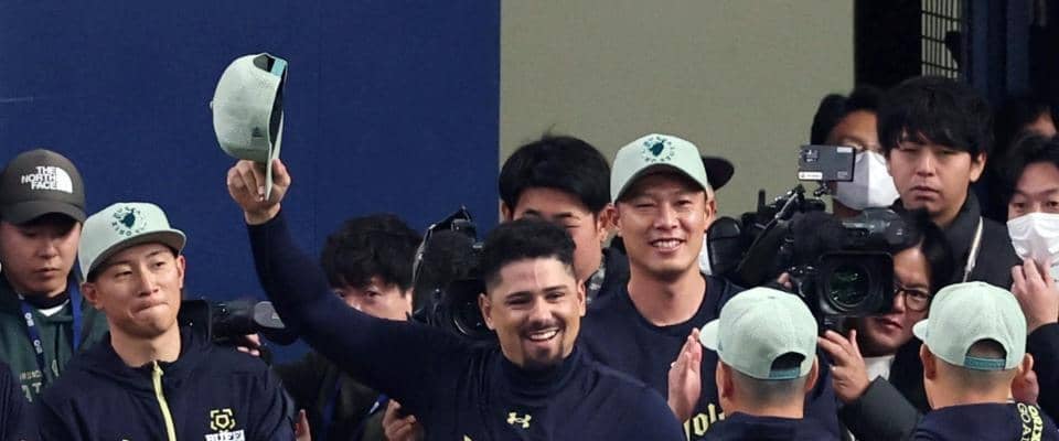 オリックス マチャドがチームに合流!ベネズエラVに貢献した右腕 仲間たちがケーキで祝福→集合写真でニッコリ
