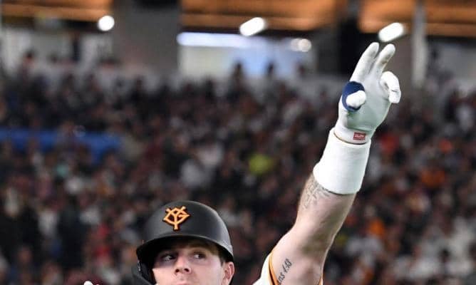 巨人 1番・キャベッジが特大の先頭打者アーチ!右翼バルコニー席にたたこみ東京ドーム騒然 開幕1番起用に現実味 打球速度185・6キロ、飛距離132・3メートル | 野球
