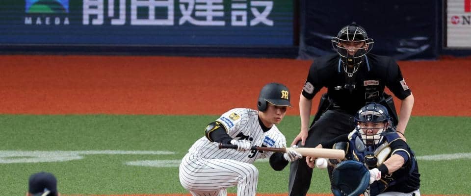 阪神 高橋遥人が異例の2死から送りバント 開幕前の練習?「9番・DH」で先発 20日には巨人・ドラ1竹丸も同様のケースで送りバント | 野球