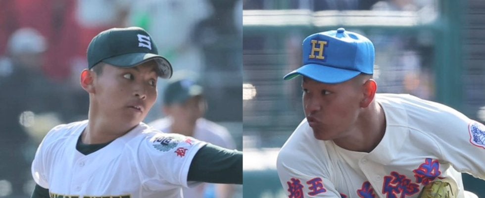 専大松戸の門倉(左)と花咲徳栄の黒川【写真=柳瀨 心祐】