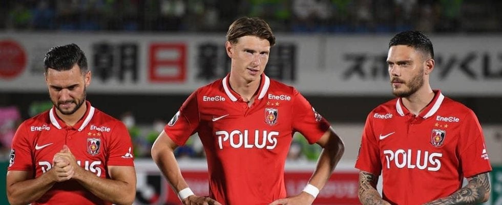 浦和レッズ時代の“北欧の魔法使い”ダヴィド・モーベルグ。中央はキャスパー・ユンカー、左はアレックス・シャルク。撮影/原壮史