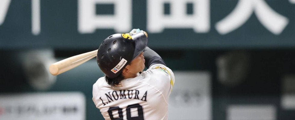 【写真】ソフトバンク対広島 8回裏ソフトバンク2死一塁、野村は左越え2点本塁打を放つ(撮影・梅根麻紀)