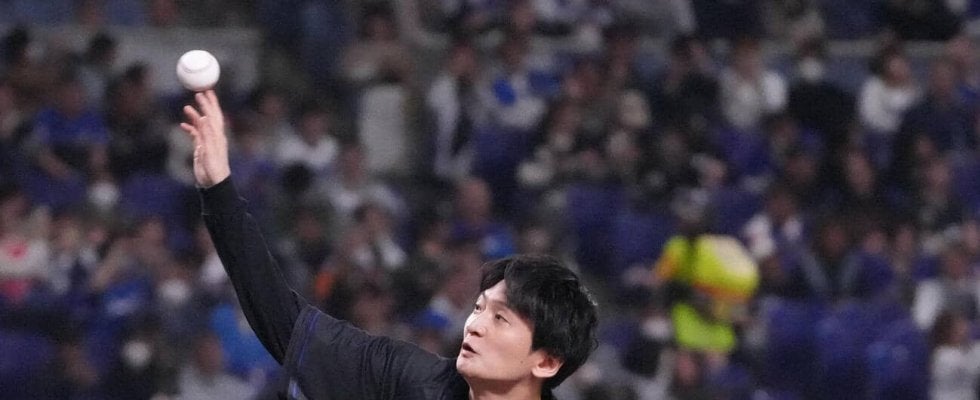 【中日】声優の島崎信長が始球式 ワンバン投球も笑顔 ドアラとの共演で場内沸かせる