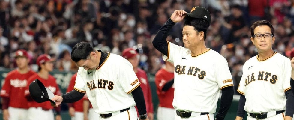 【写真】巨人対楽天 最終戦は連勝ストップなり、スタンドに一礼する巨人阿部監督ら(撮影・浅見桂子)