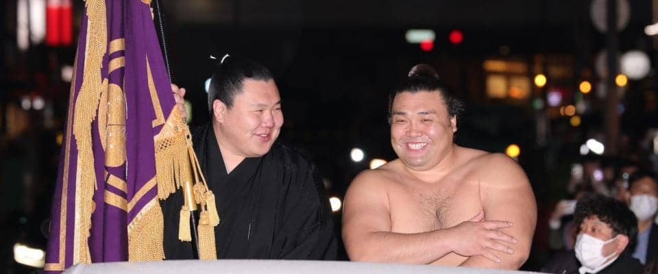 【珍事】霧島が締め込みのまま優勝パレード 時間が押して小雨が降り、急きょ上半身裸「寒い…」