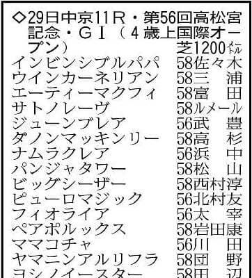 高松宮記念の主な出走予定馬。※騎手は想定