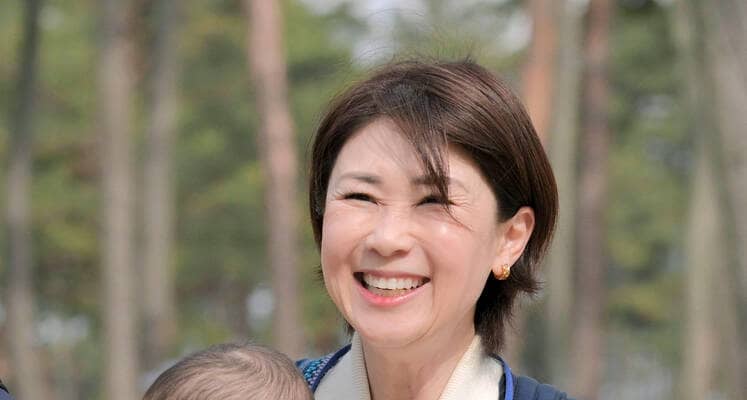 優勝した笠りつ子を息子を抱いて応援した古閑美保さん(カメラ・今西 淳)