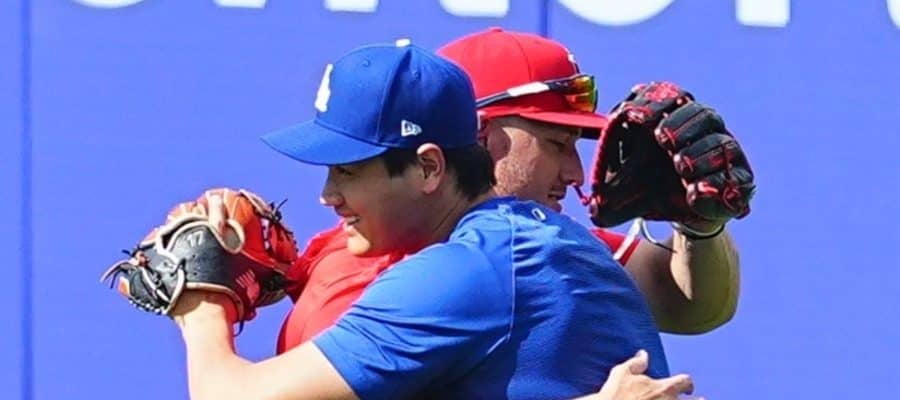 大谷翔平、トラウトとハグで再会 古巣戦前に笑顔で駆け寄る…見せた変わらぬ絆 | 野球