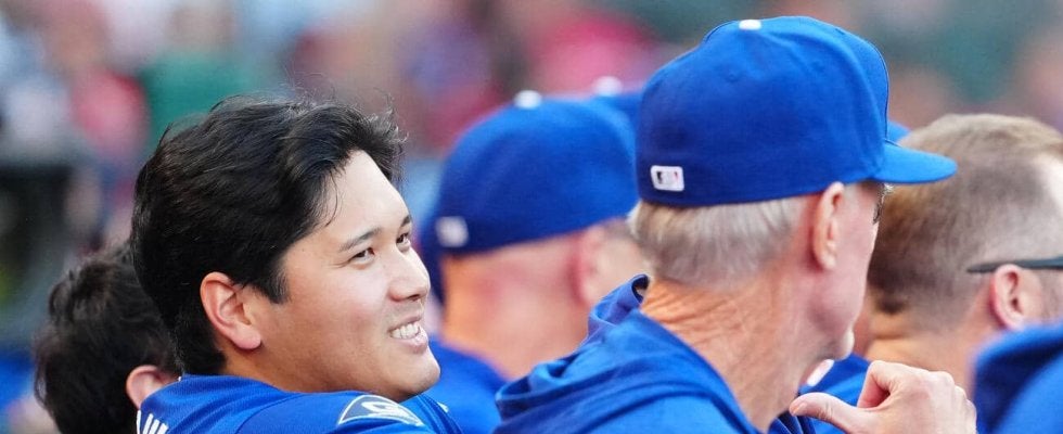 【写真】ドジャース対エンゼルス ベンチで笑顔を見せるドジャース大谷(撮影・垰建太)