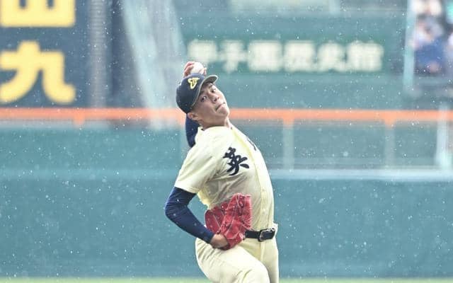 九回裏のピンチ 英明・冨岡投手が見せた無表情 「内心ちょっと…」