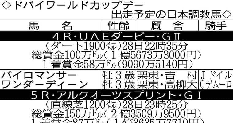 ドバイワールドカップデー出走予定の日本調教馬