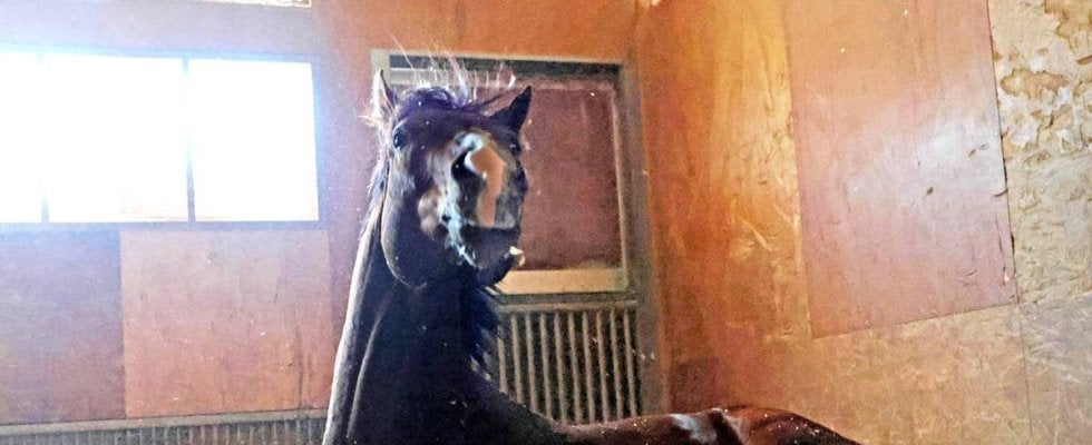 松ケ下記者が注目するレイピアは馬房でゆったり(カメラ・高橋 由二)