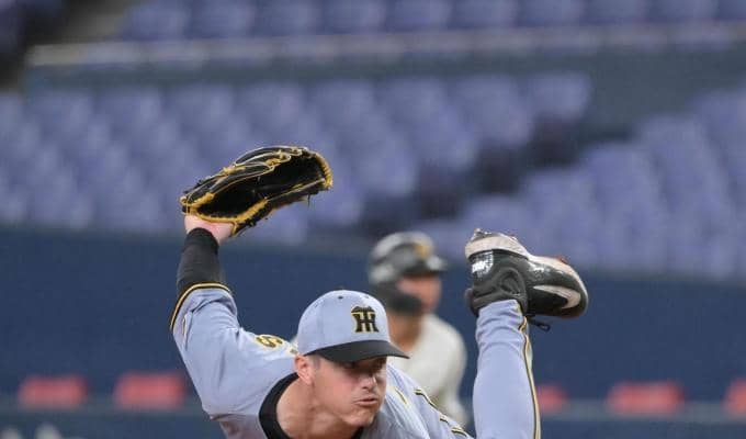 「ファーム・西地区、オリックス-阪神」(25日、京セラドーム大阪) 開幕前の最終登板に臨む阪神先発のイーストン・ルーカ…