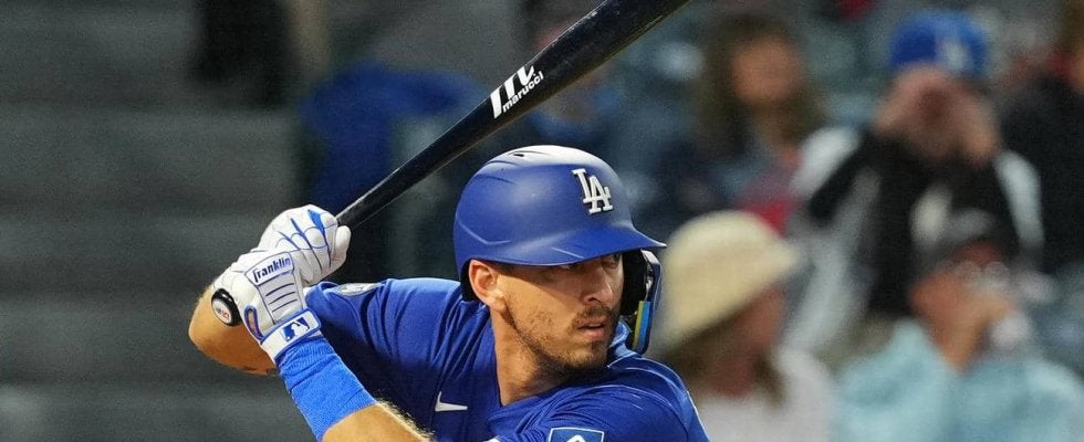 【写真】2025年3月25日、オープン戦エンゼルス対ドジャース、打席で構えるオースティン・バーンズ