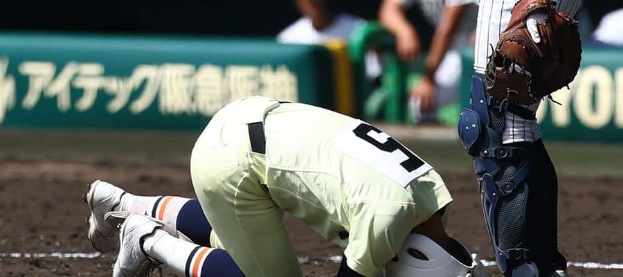 英明・榎本が頭部死球受け担架で搬送 場内騒然…守備から復帰し場内温かい拍手