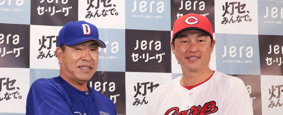 セ・リーグ開幕前日の監督共同会見が26日に行われ、マツダスタジアムでは広島の新井貴浩監督(49)と中日の井上一樹監督(5…