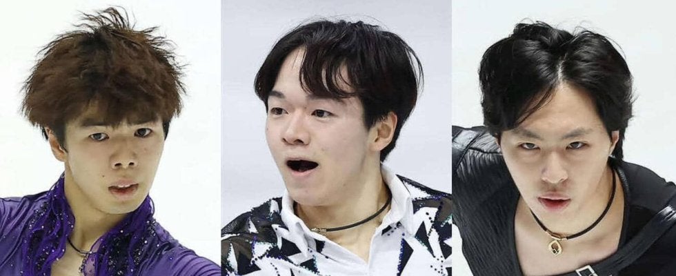 【写真】世界選手権男子SPに臨んだ佐藤駿、鍵山優真、三浦佳生(左から)