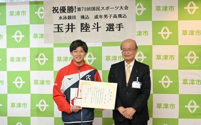 滋賀県内で開催された第79回国民スポーツ大会の成年男子高飛び込みで優勝した玉井陸斗選手(19)に26日、草津市民スポー…