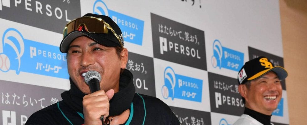 【写真】和やかな雰囲気で開幕前日会見を行った日本ハム新庄監督(左)とソフトバンク小久保監督(撮影・岩下翔太)