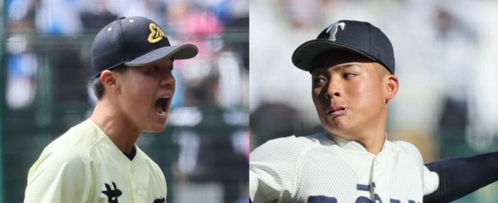 先発する英明の冨岡投手(左)と小川投手【写真=柳瀨 心祐】