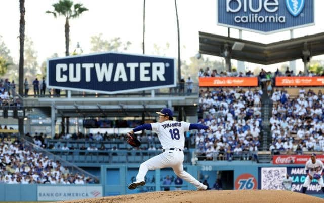 開幕戦に先発したドジャースの山本由伸=金居達朗撮影
