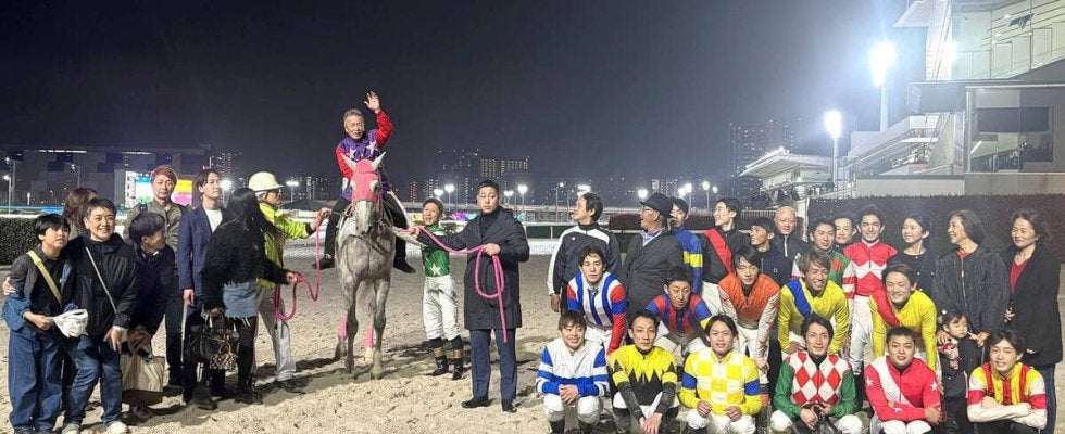 【大井競馬】50年超のホースマン人生に幕 赤嶺本浩調教師がラストレース終え「いずれは馬主にも」 勝負服姿で記念撮影