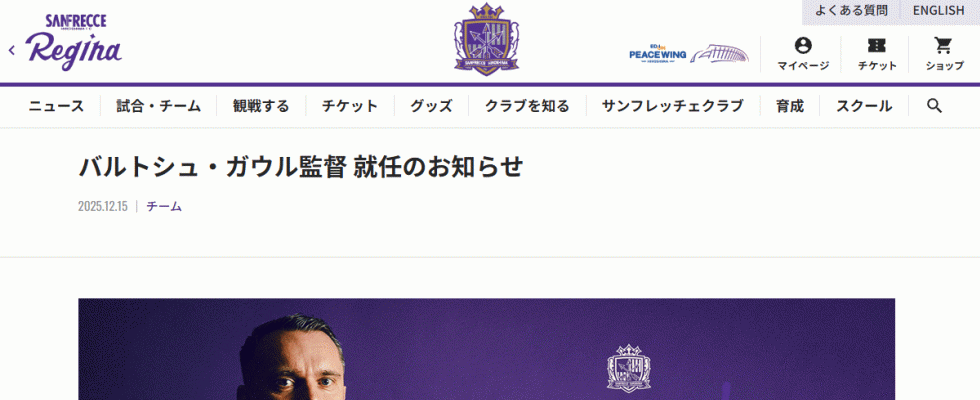 【写真】ガウル監督(サンフレッチェ広島の公式サイトから)