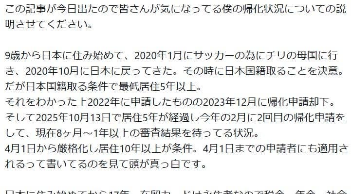 FC町田ゼルビアのMFバスケス・バイロン(25)が27日、Xを更新。同日午前に法務省が、外国人が日本国籍を取得する「帰化…