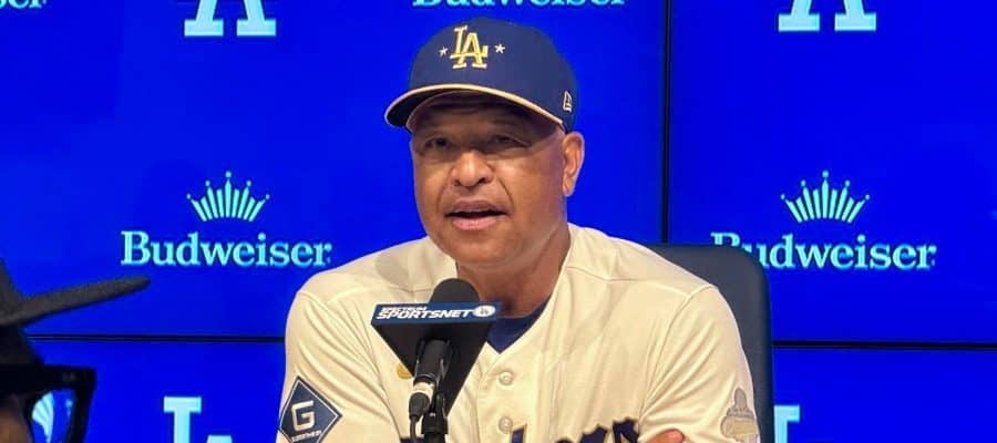 試合後、取材に応じたドジャースのデーブ・ロバーツ監督【写真:小谷真弥】
