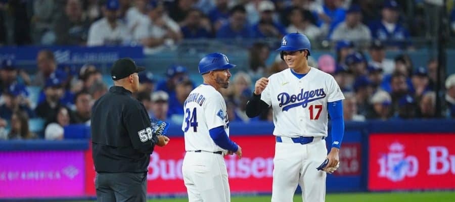 【実際の様子】一塁ベースで塁審と大谷翔平の珍交流 試合に差し入れされた決定的瞬間