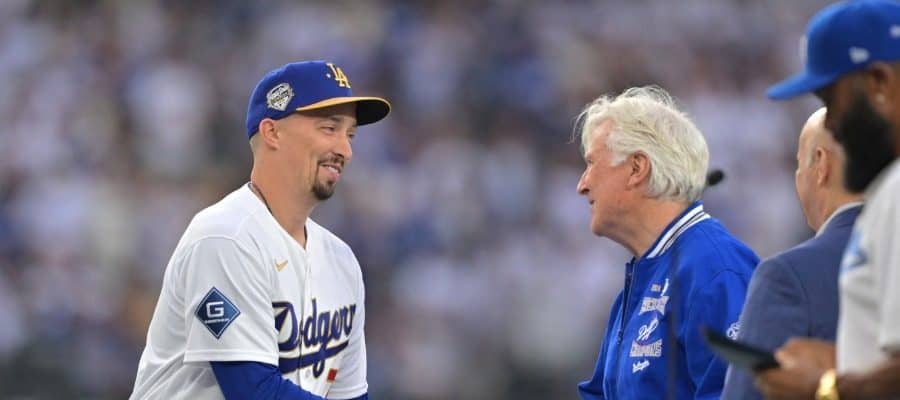 セレモニーに参加したドジャースのブレイク・スネル【写真:ロイター】