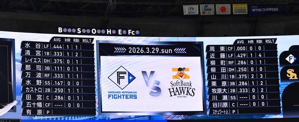 【写真】ソフトバンク対日本ハム3回戦の先発メンバー(撮影・岩下翔太)