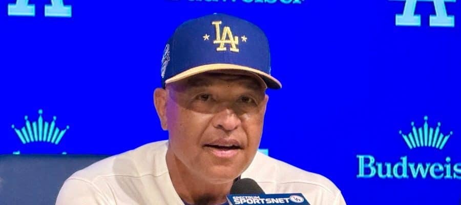 試合後、取材に応じるドジャースのデーブ・ロバーツ監督【写真:小谷真弥】