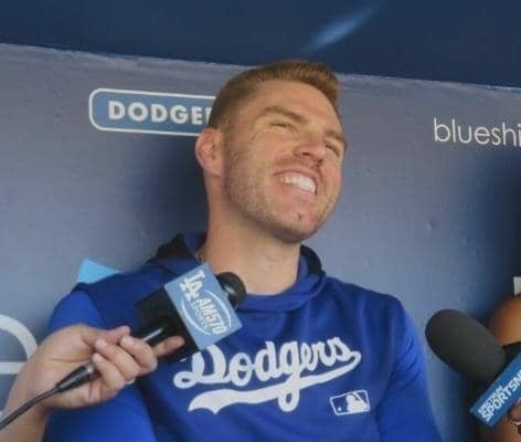 フリーマン「向こうが“こっち来いよ”って合図」 試合中に敵軍野手とまさかのハグ 笑撃プレーの裏側明かす 試合後のクラブハウスで報道陣の笑い誘う