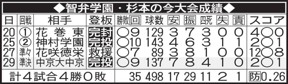 【写真】智弁学園・杉本の今大会成績
