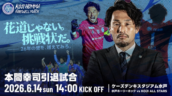 【水戸】本間幸司の引退試合が6月14日開催決定 「花道じゃない、挑戦状だ」