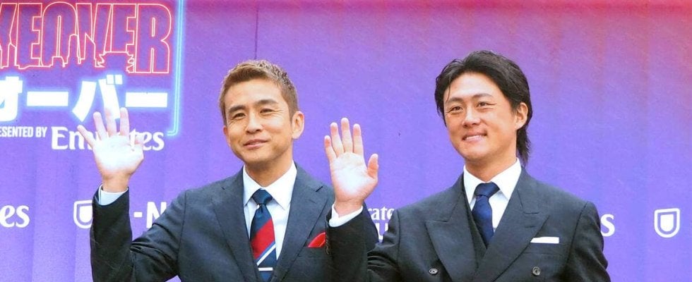 元日本代表の稲本潤一さんと李忠成さんは31日、都内で「エミレーツFAカップ」のオフィシャルトロフィーツアーイベント「エ…
