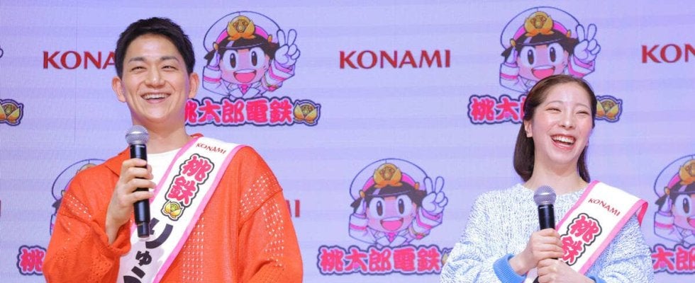 桃太郎電鉄2のイベントに出席した木原龍一(左)、三浦璃来(C)さくまあきら(C)Konami Digital Entertainment(カメラ・太田 和樹)